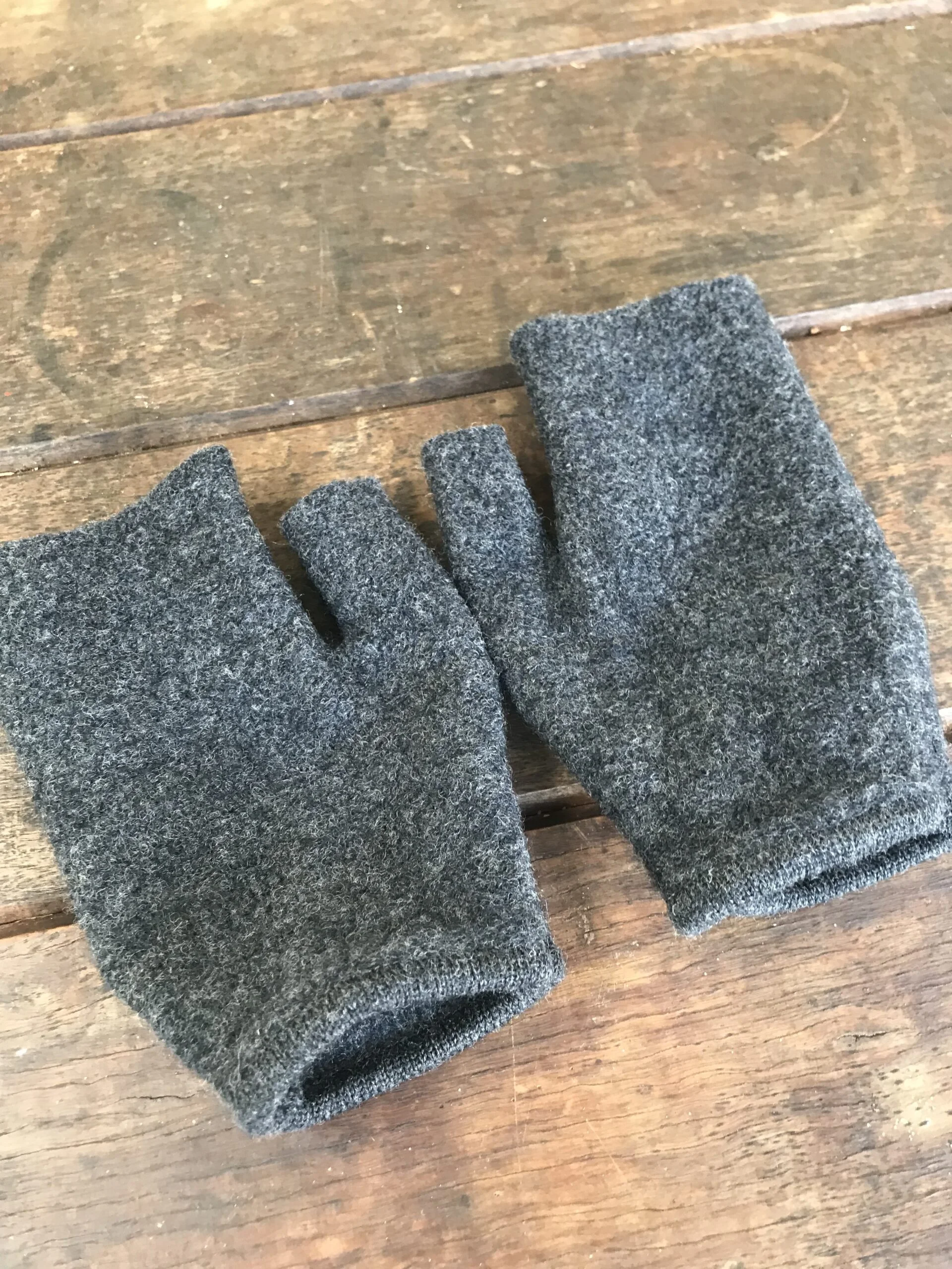 The fingerless mittens and beanies are a little fiddly to put together but having done this for a few seasons now, I believe I have got it down to a fine working system. The challenge is always trying to ensure maximum usage of material with the least amount of waste. Eventually, I do end up with little pieces that I collect for cushion filling or discard into my worm farm ( this is one of the pleasures I get working with natural fabrics and fibres!)