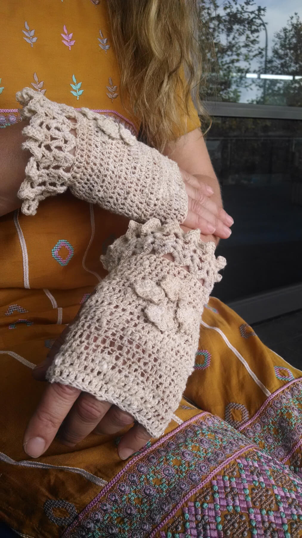I first met Kylie selling her exquisite crocheted stuffed toys at the Stirling Street Art Centre Flea Market. Getting to see her work was a boost to my ongoing pursuit to collaborate with local crafts persons, artisans and producers. All commissioned pieces of silk and woollen crocheted creations by her continue to sell out at my stall. Her speciality would be the beautiful eri silk wrist warmers which look like lace.