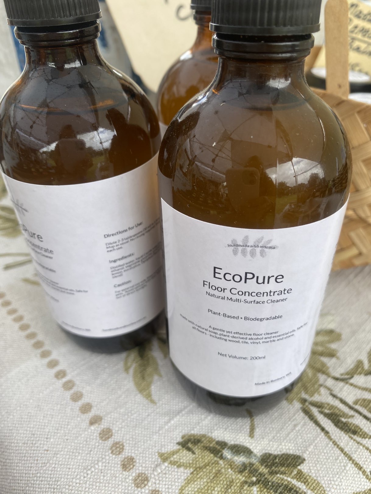 The result is a naturally effective cleaner that my market customers and I appreciate using. It includes liquid Castile soap produced by myself and essential oils of tea tree, lemon and eucalyptus amongst other natural ingredients for a wonderfully fresh and clean floor without the harsh chemicals.