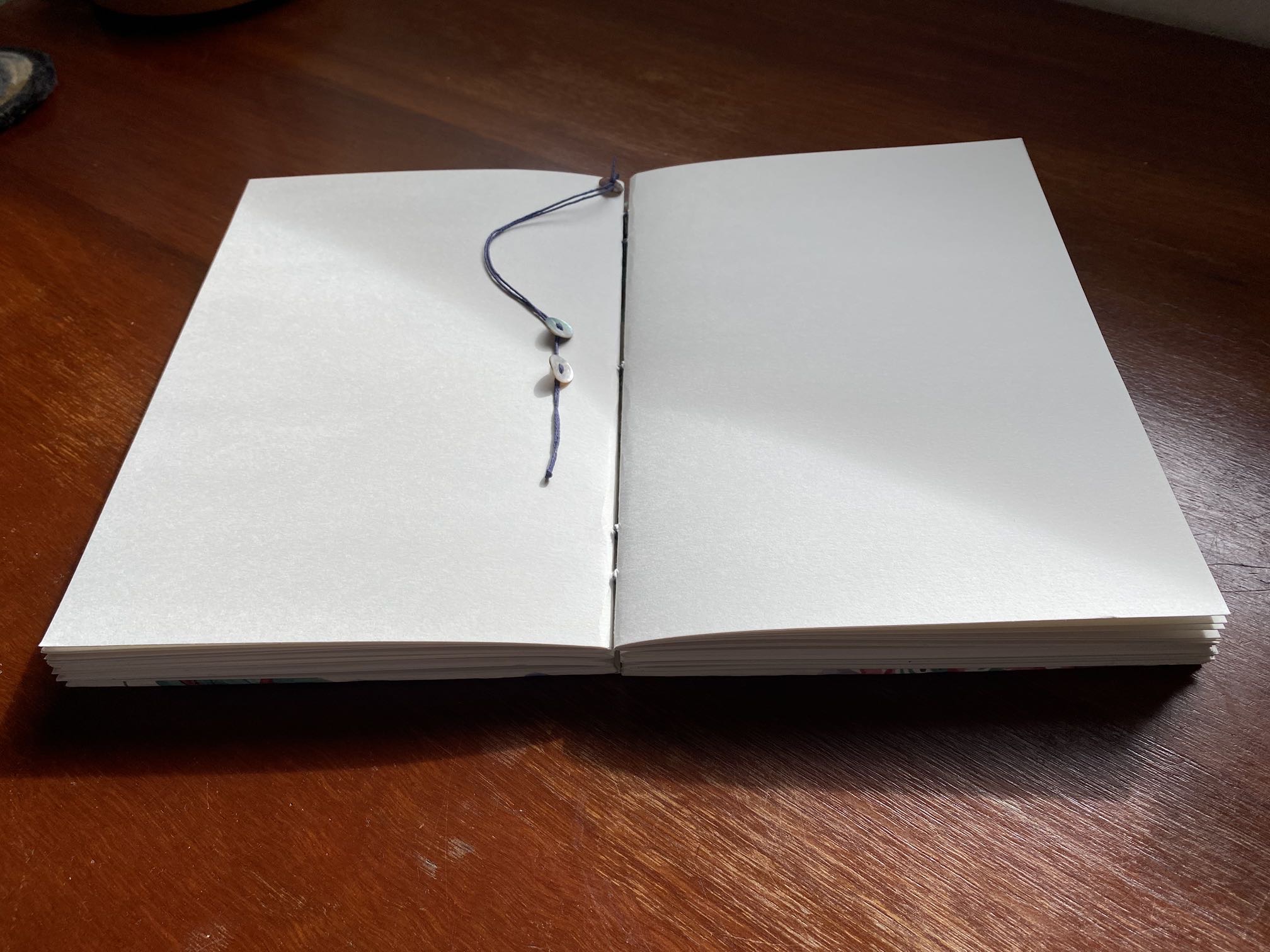 Hand-bound using traditional Coptic binding stitch.