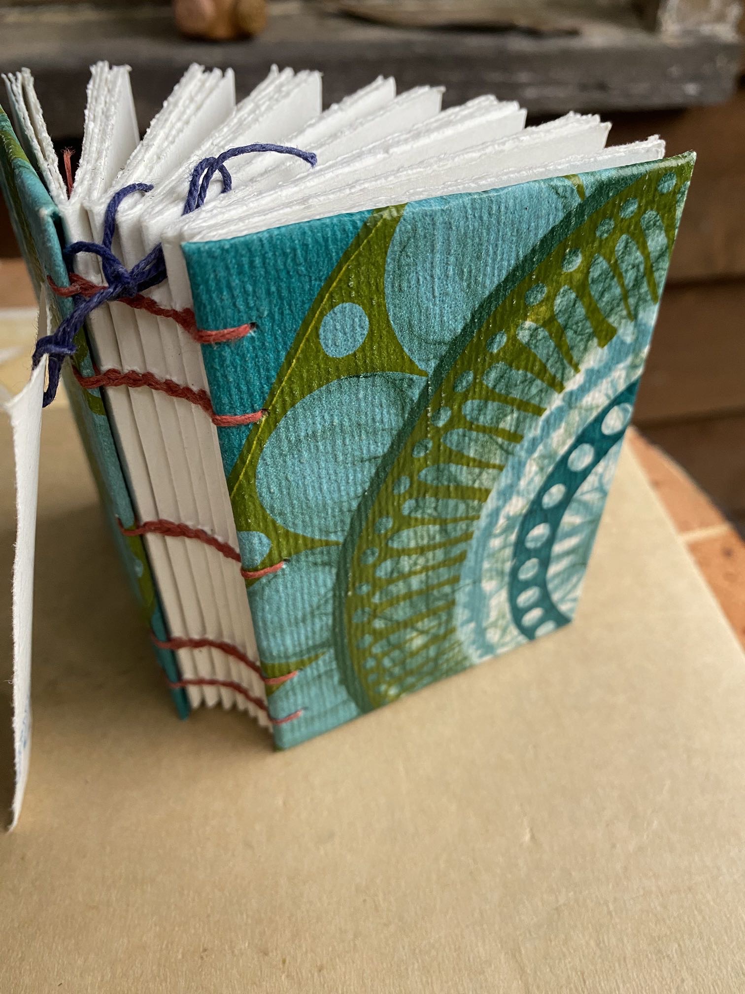 About 17 years ago I came across these exquisitely bound books by my late friend fibre-folio artist and maker Jane Flower. It was a tiny coptic stitched book that Jane had on display while teaching at a book binding workshop. I was hooked. These books now occupy a special place in my repertoire of handcrafted items.